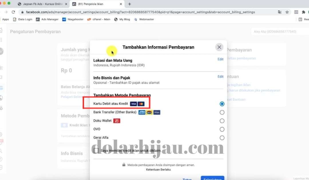 1. Cara Isi Saldo Facebook Ads Dengan Kartu Debit atau Kredit