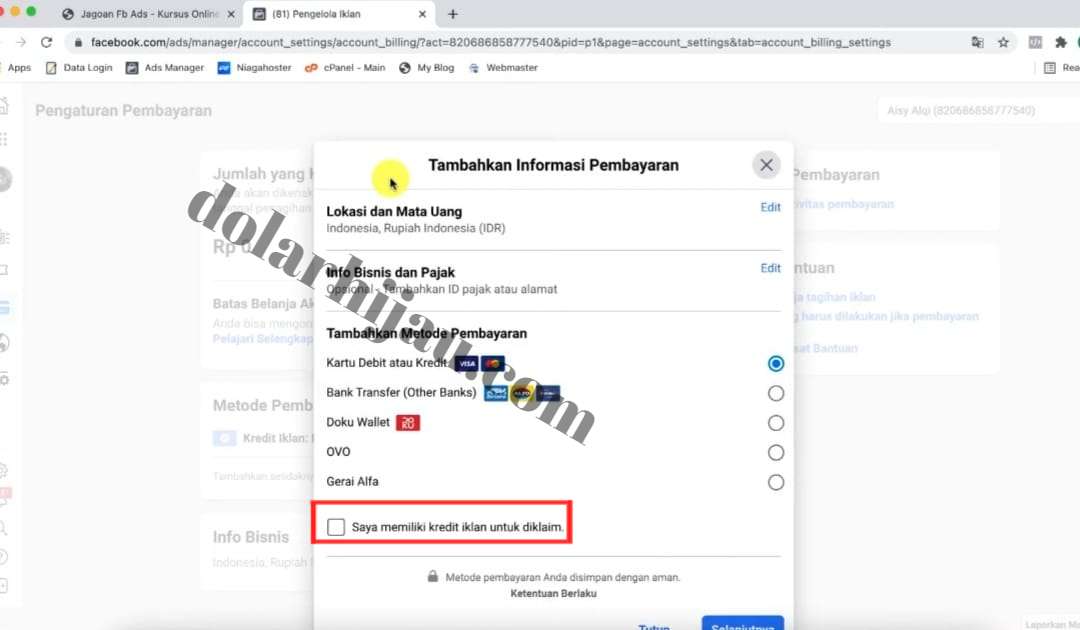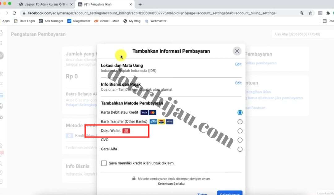Cara Isi Saldo Facebook Ads Melalui Doku Wallet